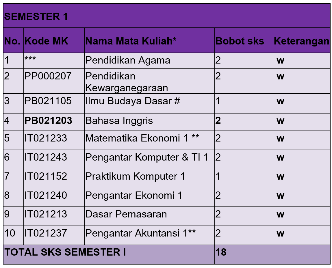 Distribusi Mata Kuliah